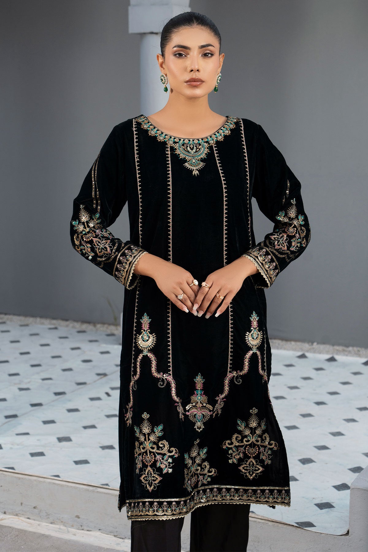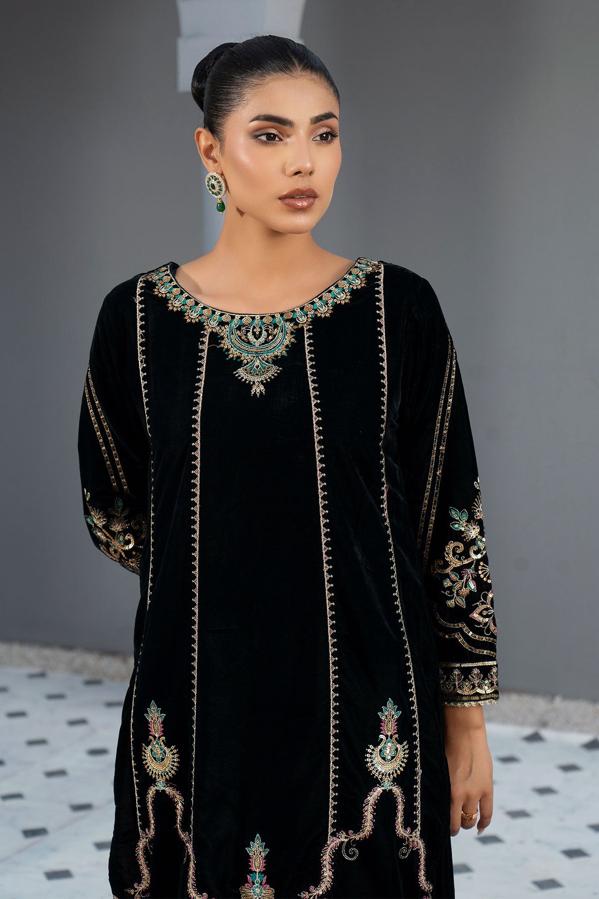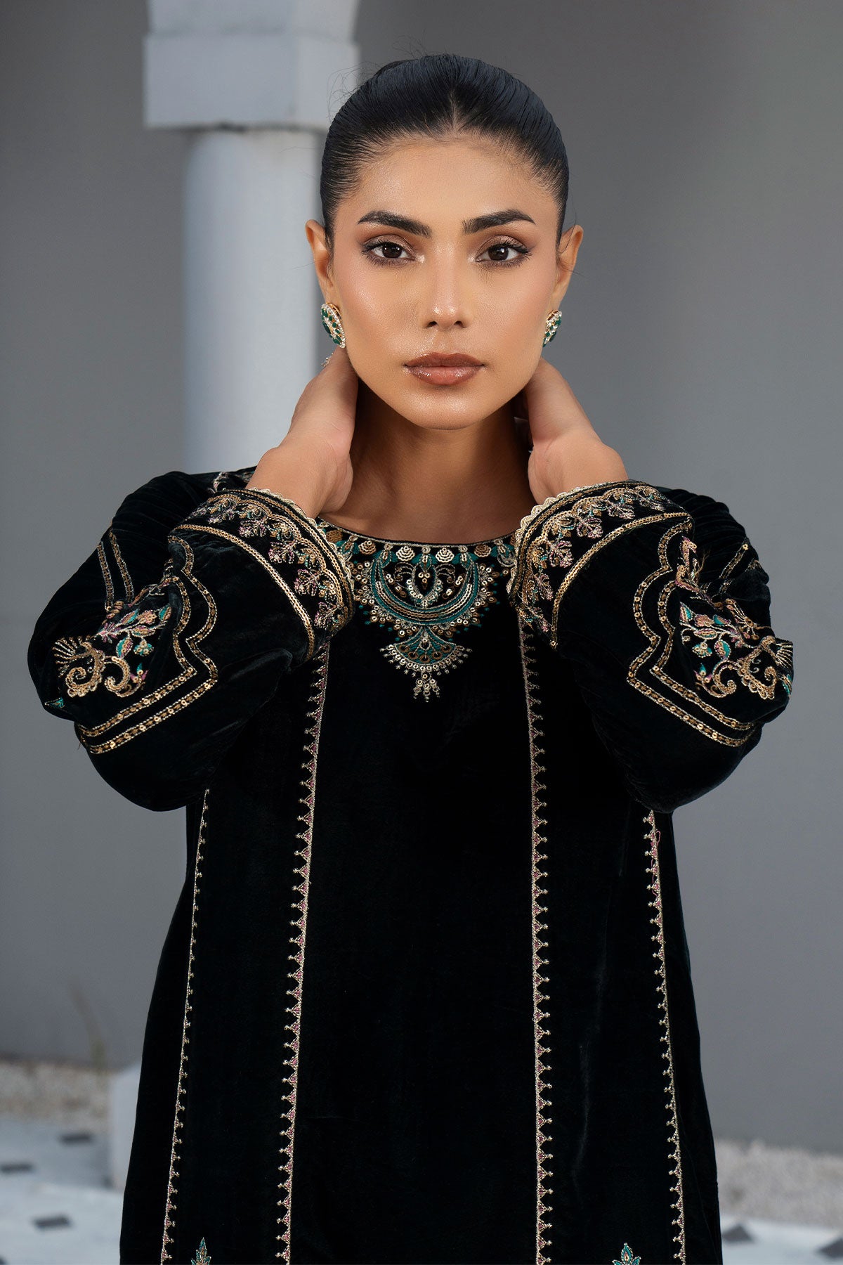 Elevate your style! This luxurious top features intricate embroidery on the front and sleeves, finished with delicate lace work. The soft velvet material adds an elegant touch, making it the perfect ready-to-wear piece for any occasion.