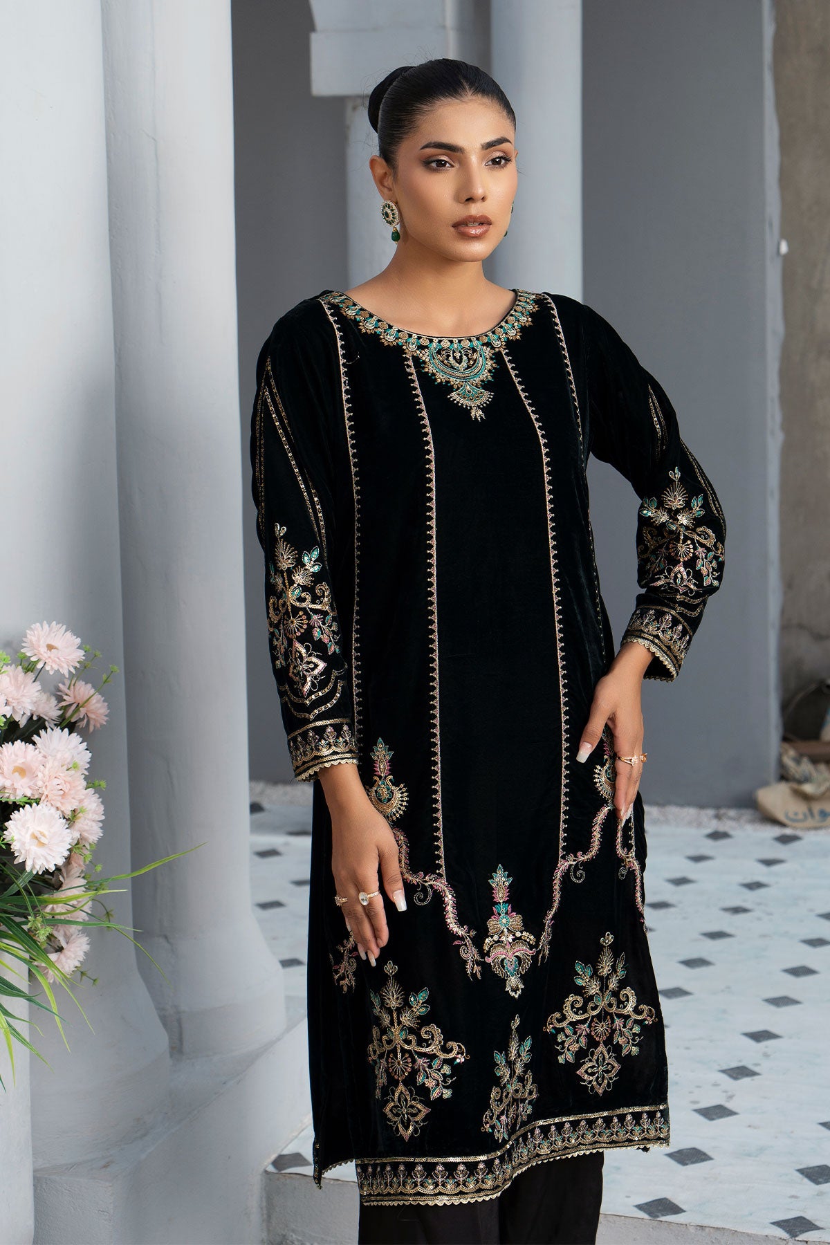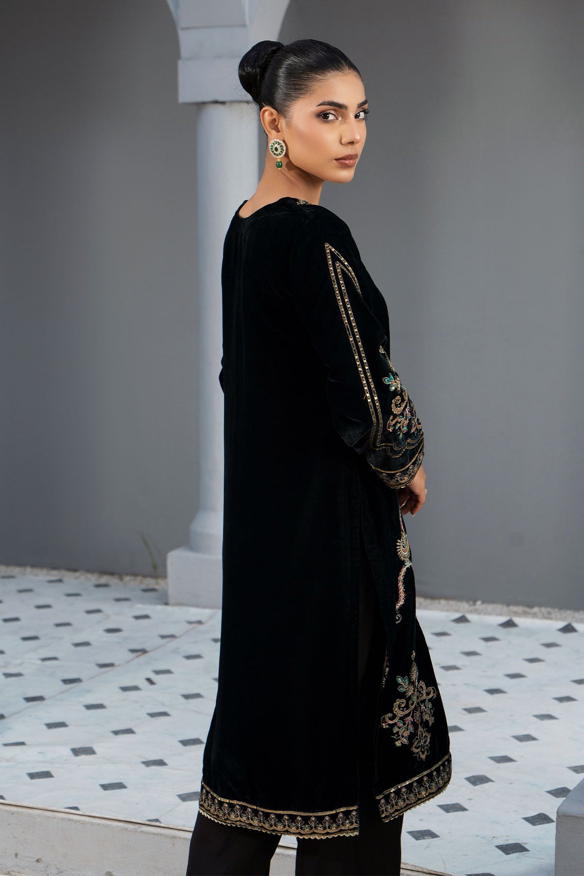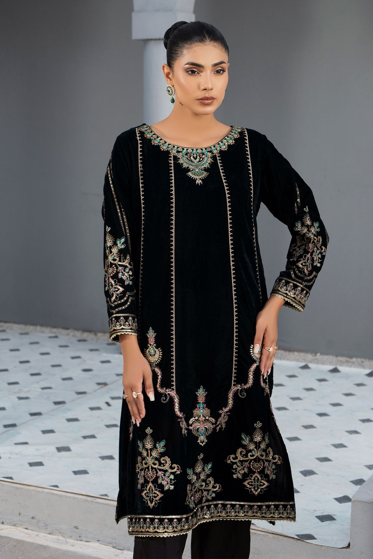 Elevate your style! This luxurious top features intricate embroidery on the front and sleeves, finished with delicate lace work. The soft velvet material adds an elegant touch, making it the perfect ready-to-wear piece for any occasion.