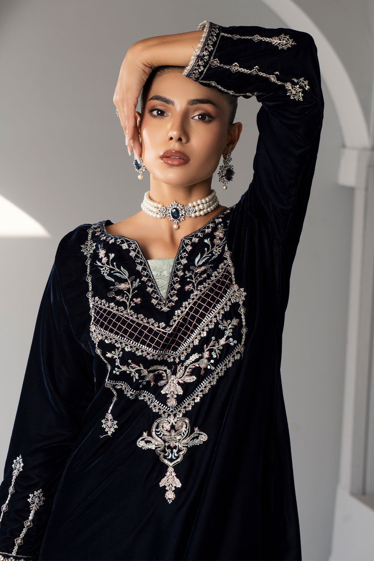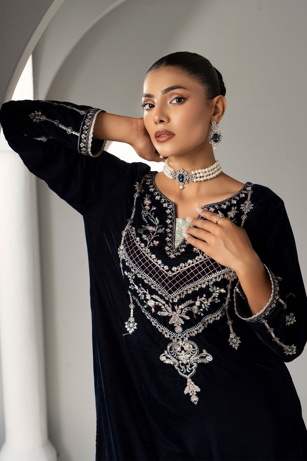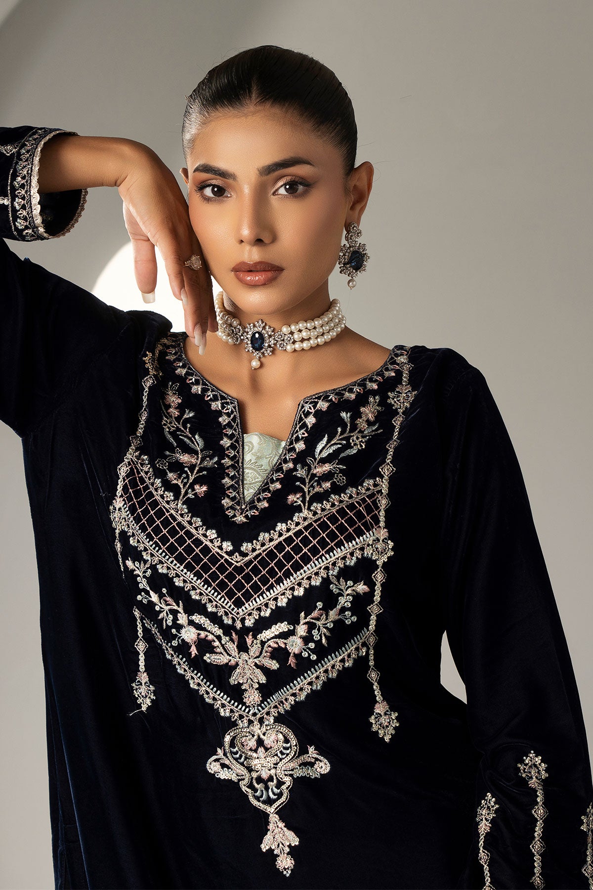 Elevate your style with our Top! The front and sleeves are exquisitely embroidered on plush velvet, while the back features a plain velvet design. Simply slip on and be ready to turn heads.