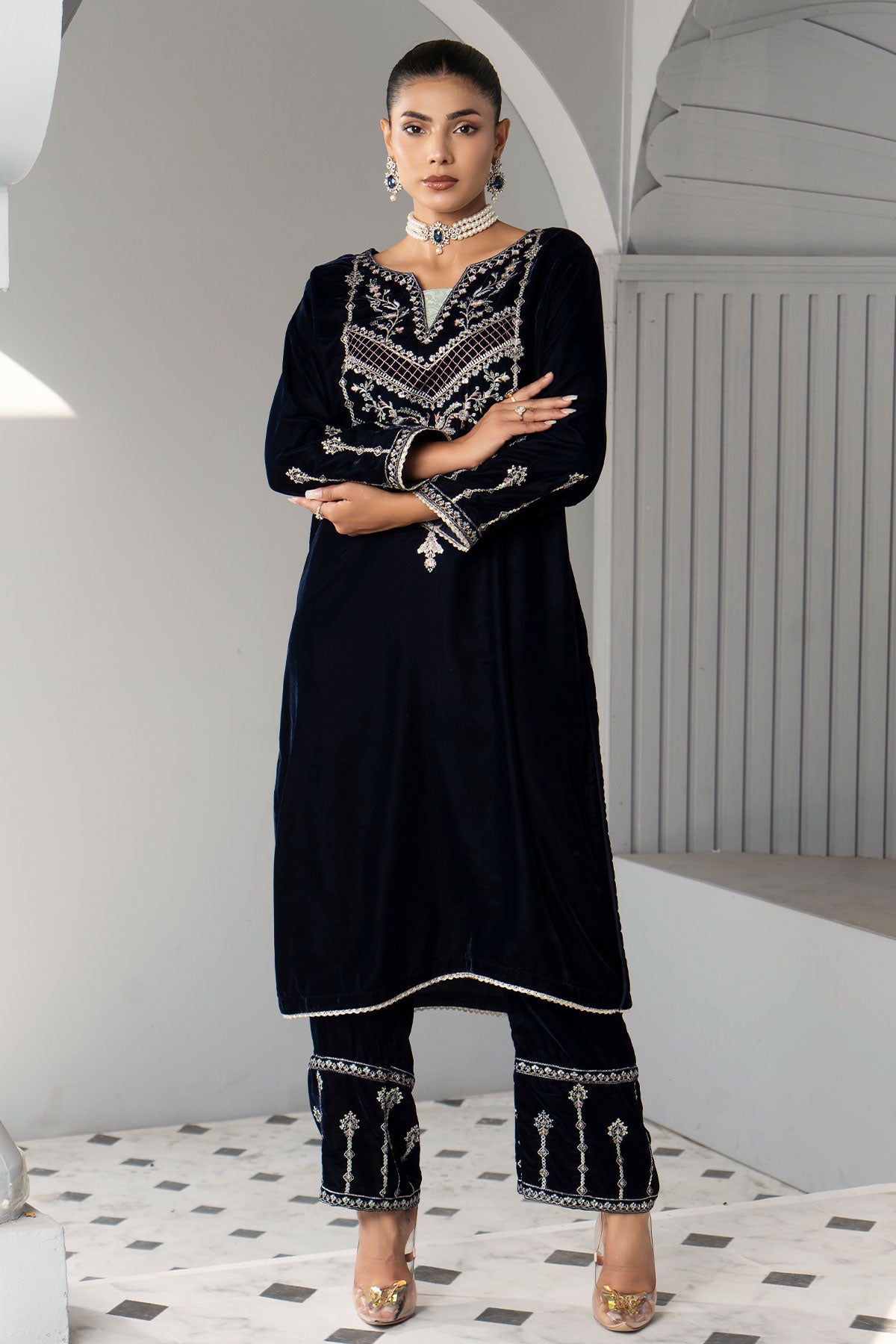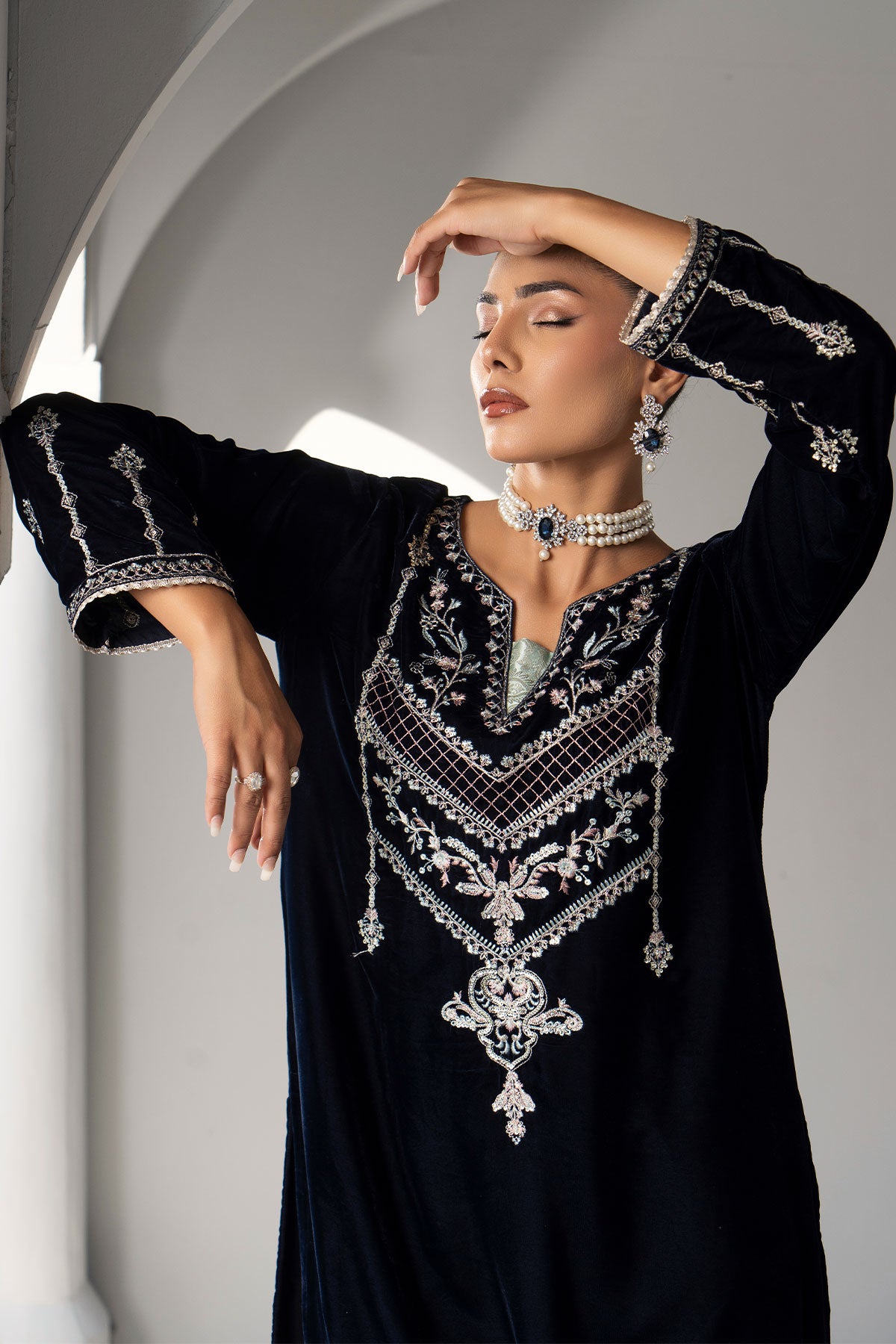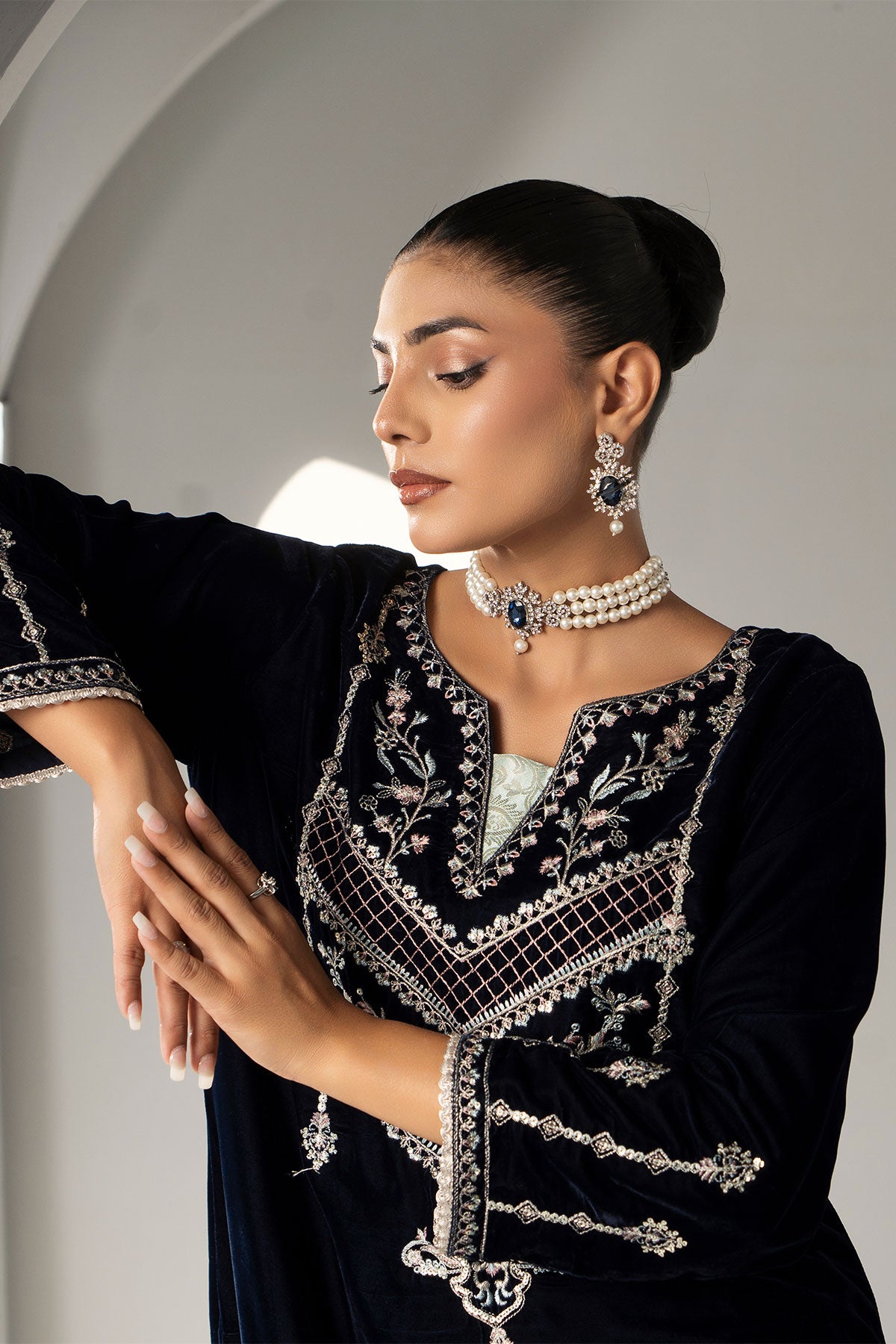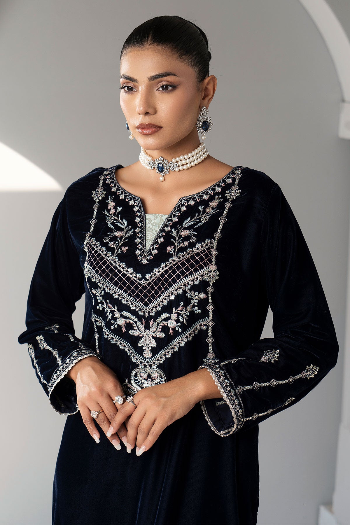 Elevate your style with our Top! The front and sleeves are exquisitely embroidered on plush velvet, while the back features a plain velvet design. Simply slip on and be ready to turn heads.