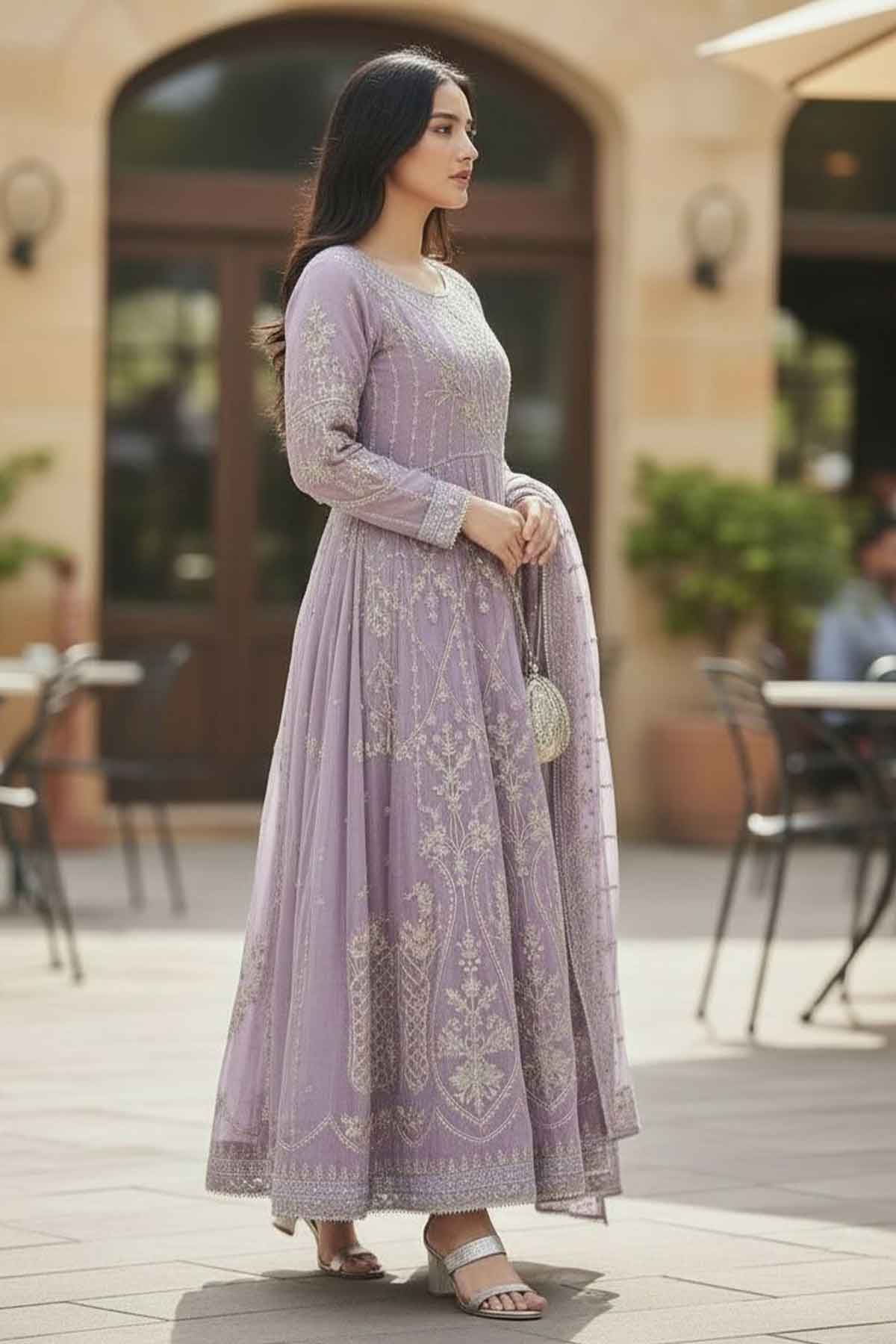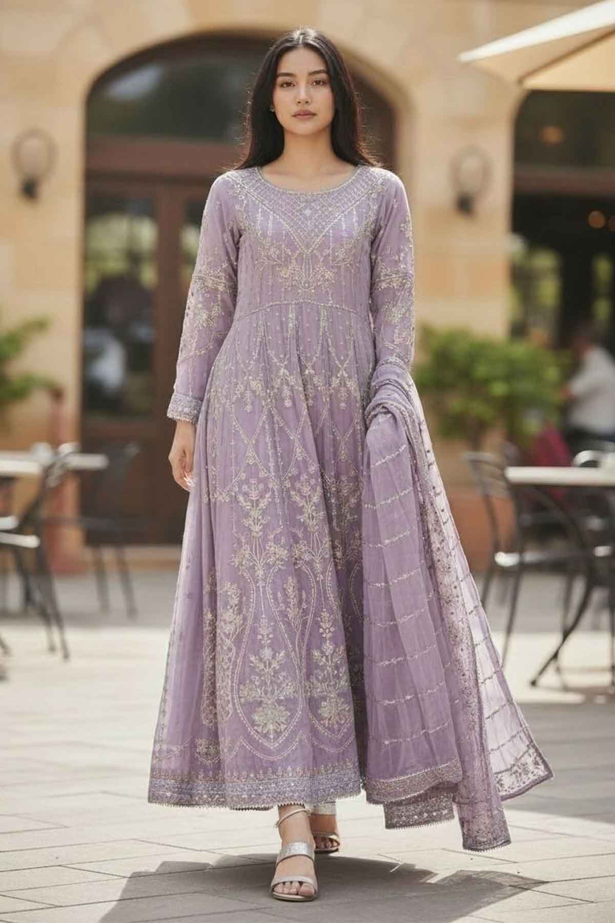 Elevate your wardrobe with this stunning three-piece ensemble designed for the modern woman. The shirt features exquisite embroidery adorning the front, back, and sleeves, beautifully complemented by intricate stone work and delicate lace detailing. The coordinating chiffon dupatta showcases elegant lace embellishments that add a touch of sophistication to any occasion. Paired with comfortable plain grip trousers, this outfit strikes the perfect balance between elegance and practicality. Ideal for celebrations, gatherings, or whenever you want to feel confident and radiant in traditional wear.