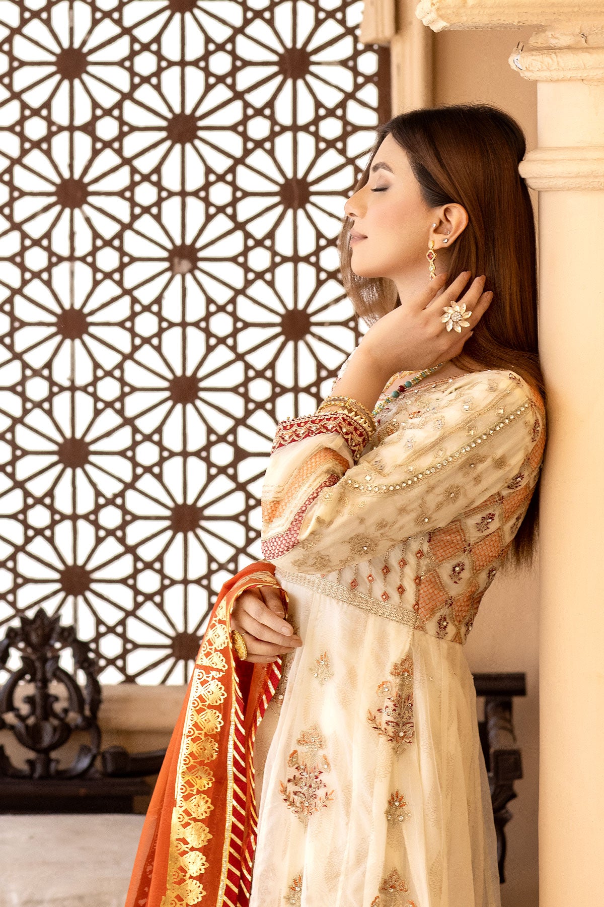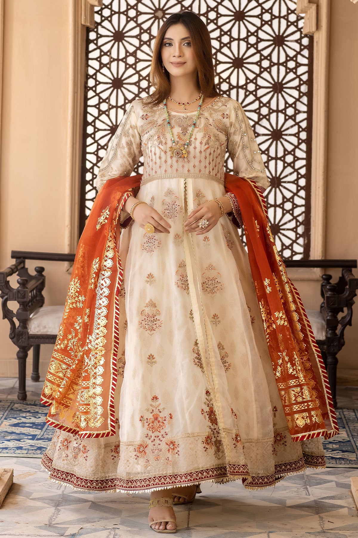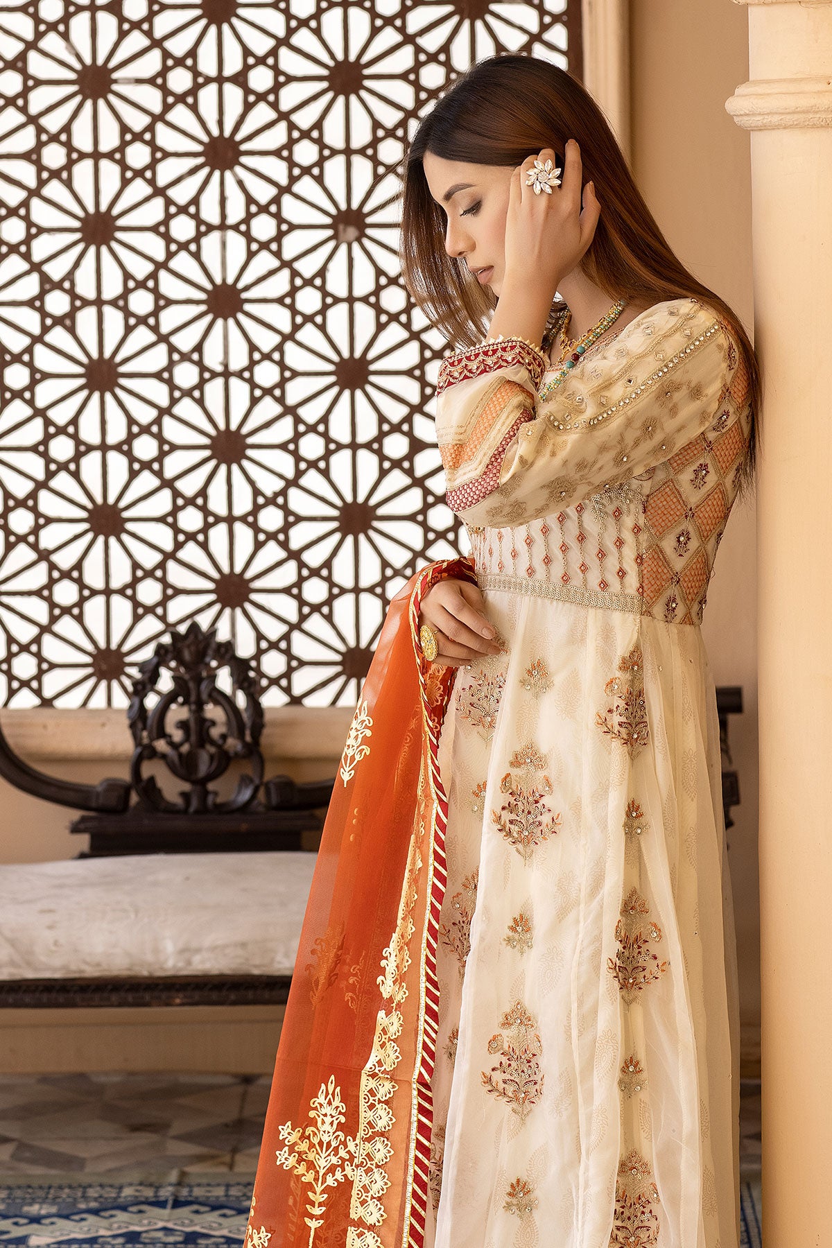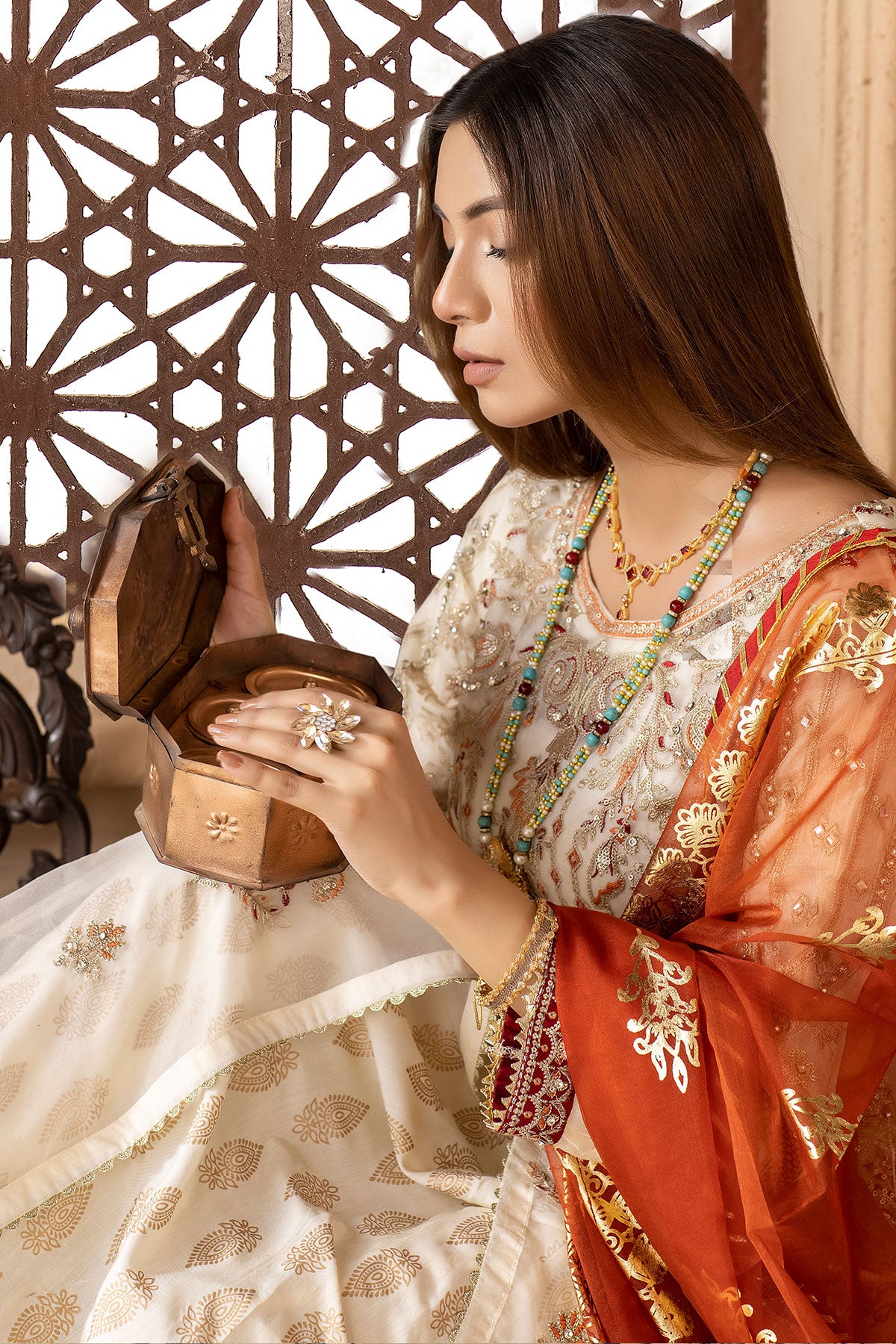 Our Maxi is perfect for making a bold statement. Featuring intricate embroidery on organza, an inner screen print on viscose and embellishments on maxi, this garment is sure to make heads turn. The finishing touches are a panni print dupatta on organza and a plain viscose trouser.