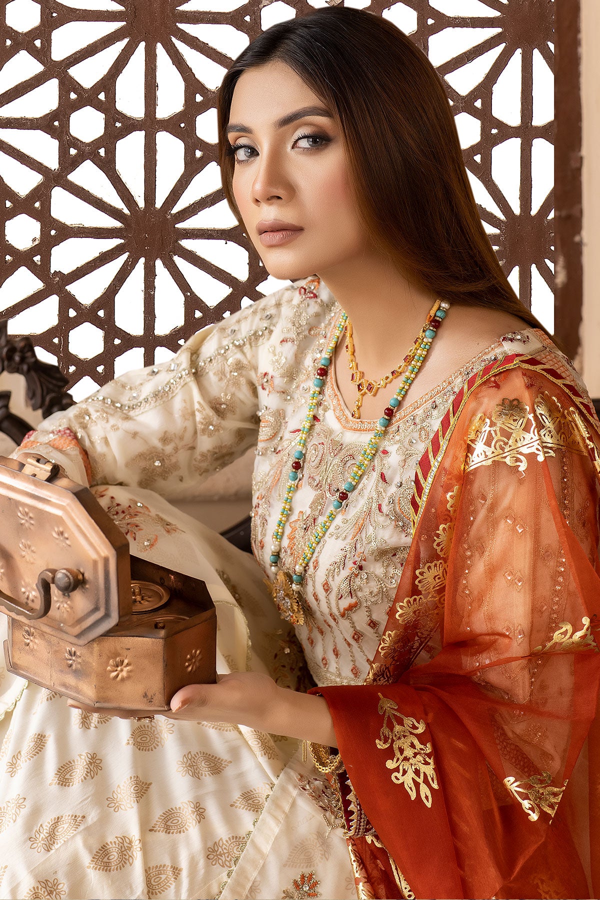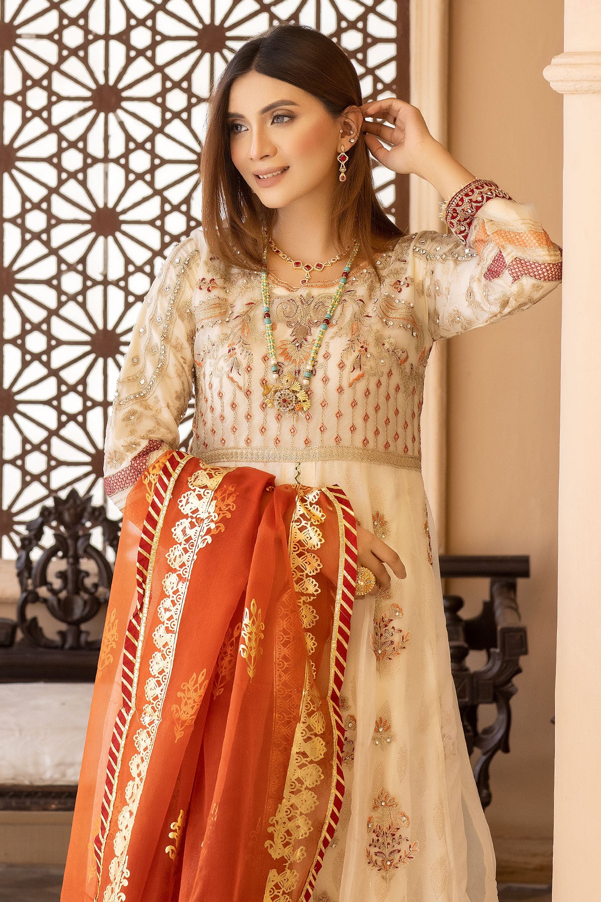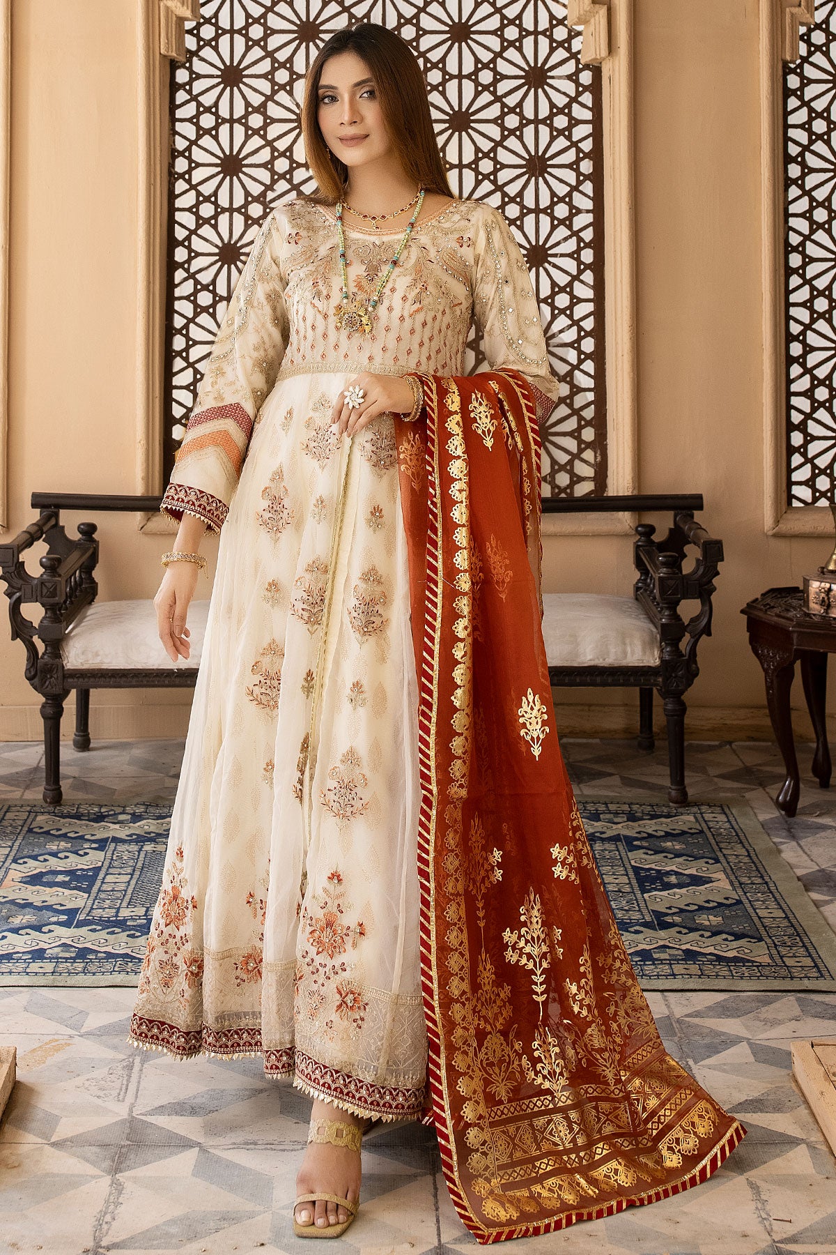 Our Maxi is perfect for making a bold statement. Featuring intricate embroidery on organza, an inner screen print on viscose and embellishments on maxi, this garment is sure to make heads turn. The finishing touches are a panni print dupatta on organza and a plain viscose trouser.