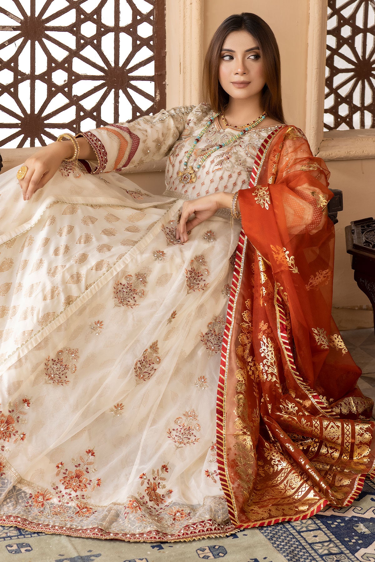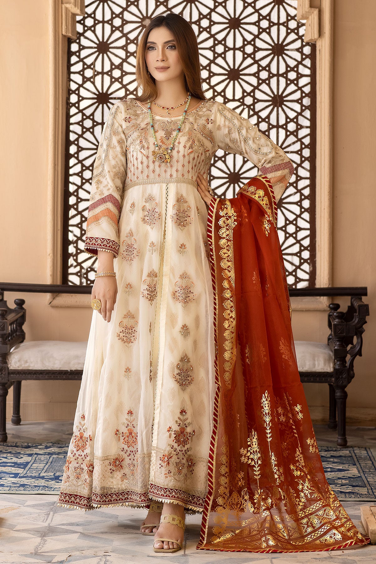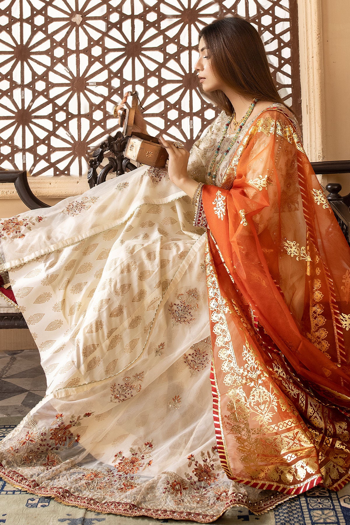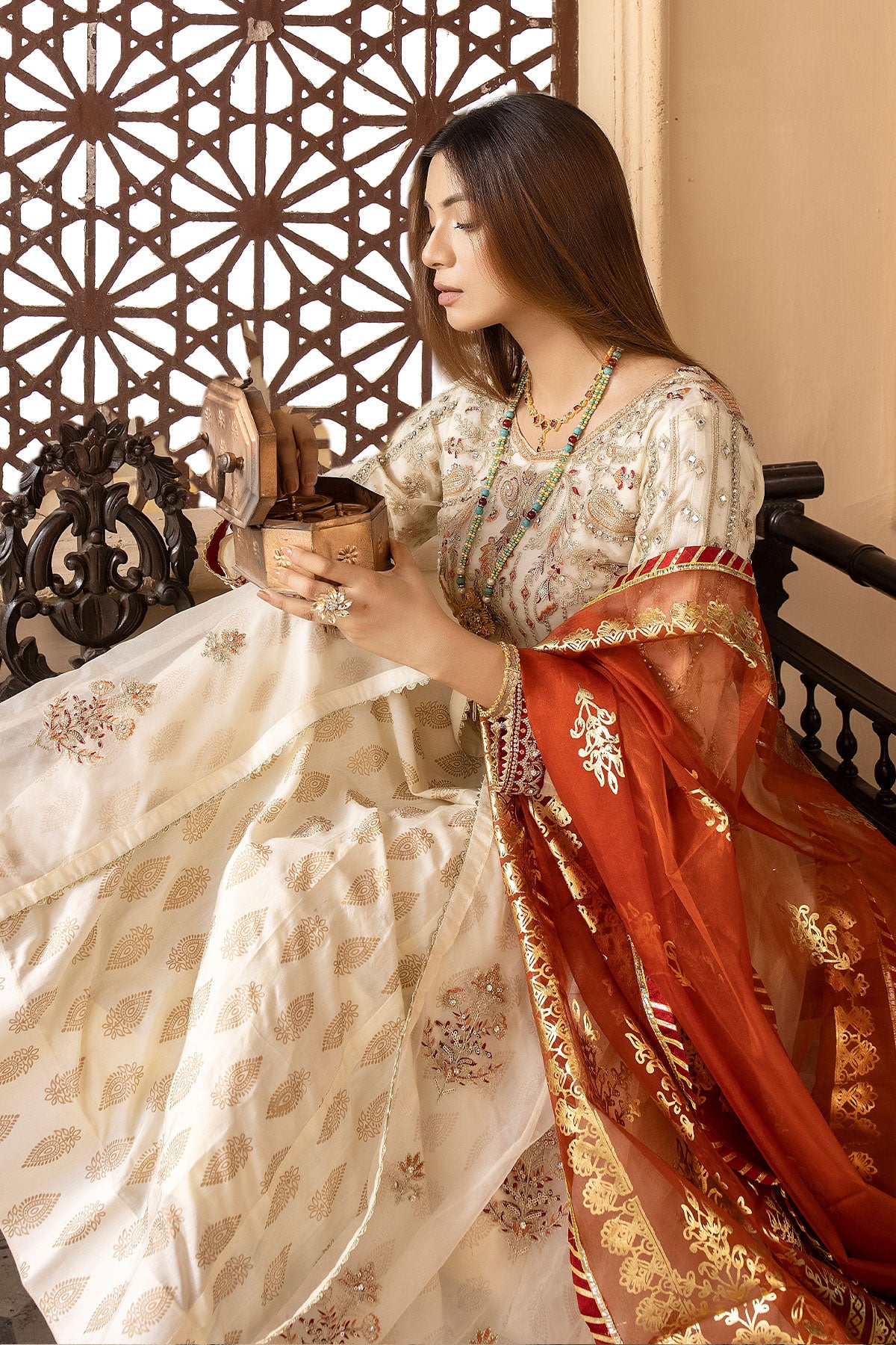 Our Maxi is perfect for making a bold statement. Featuring intricate embroidery on organza, an inner screen print on viscose and embellishments on maxi, this garment is sure to make heads turn. The finishing touches are a panni print dupatta on organza and a plain viscose trouser.
