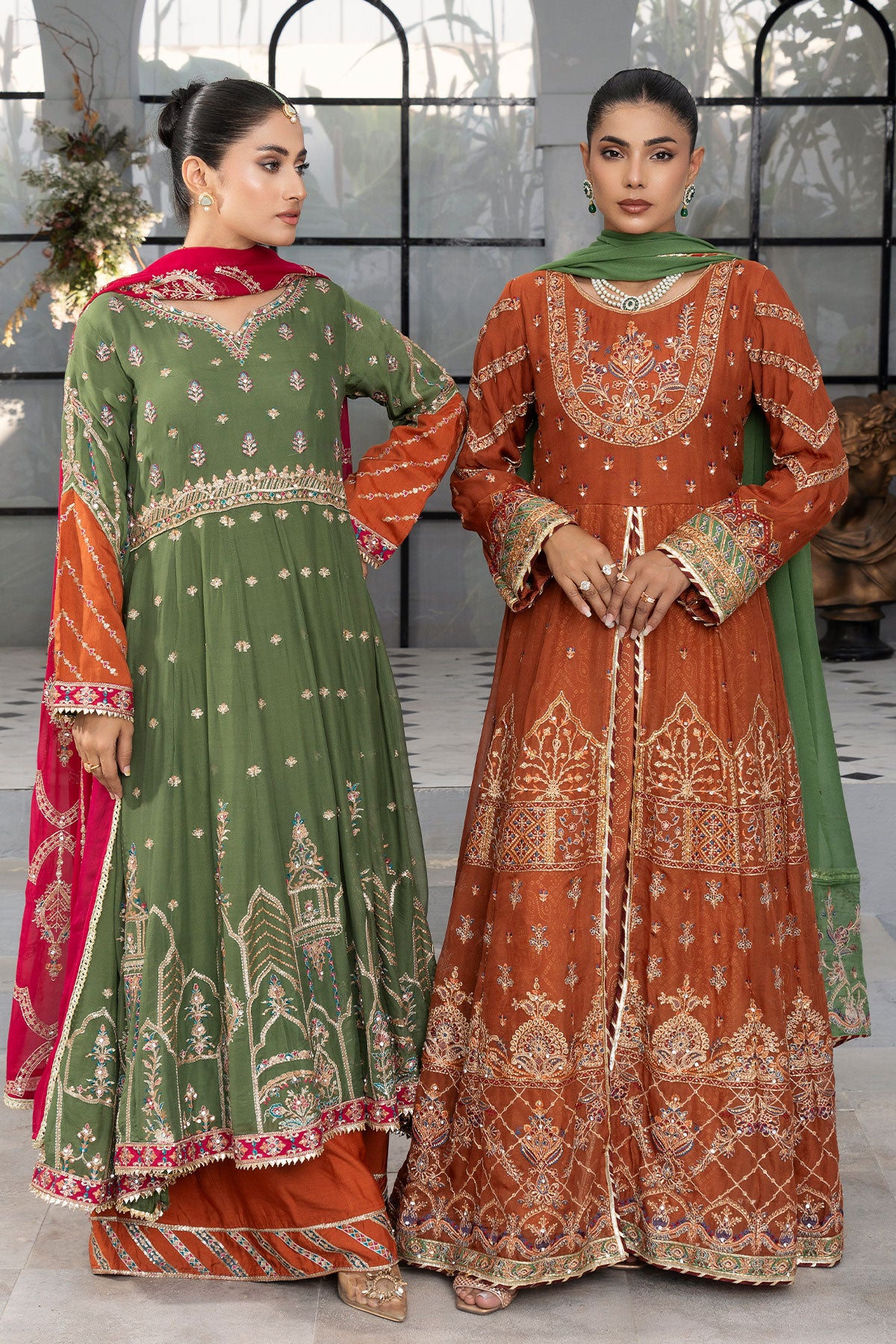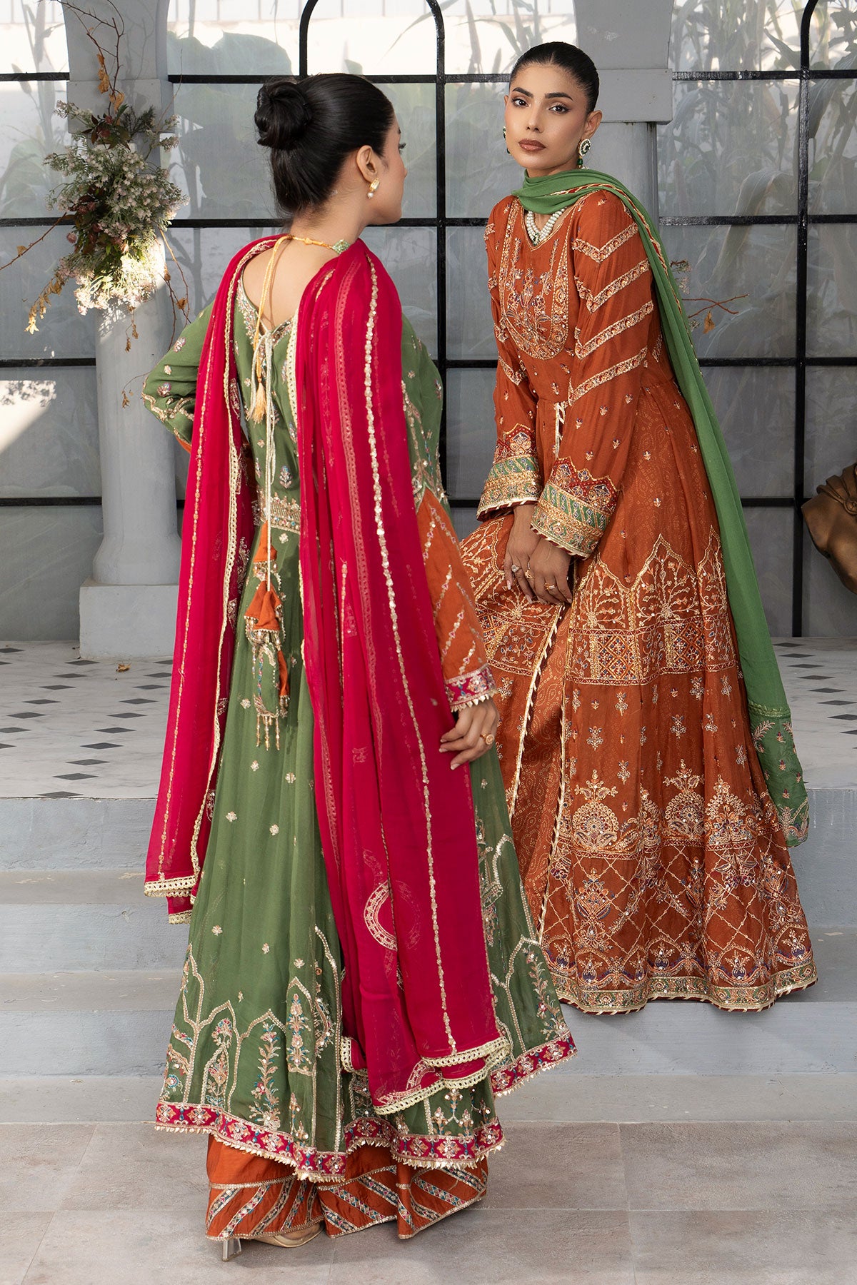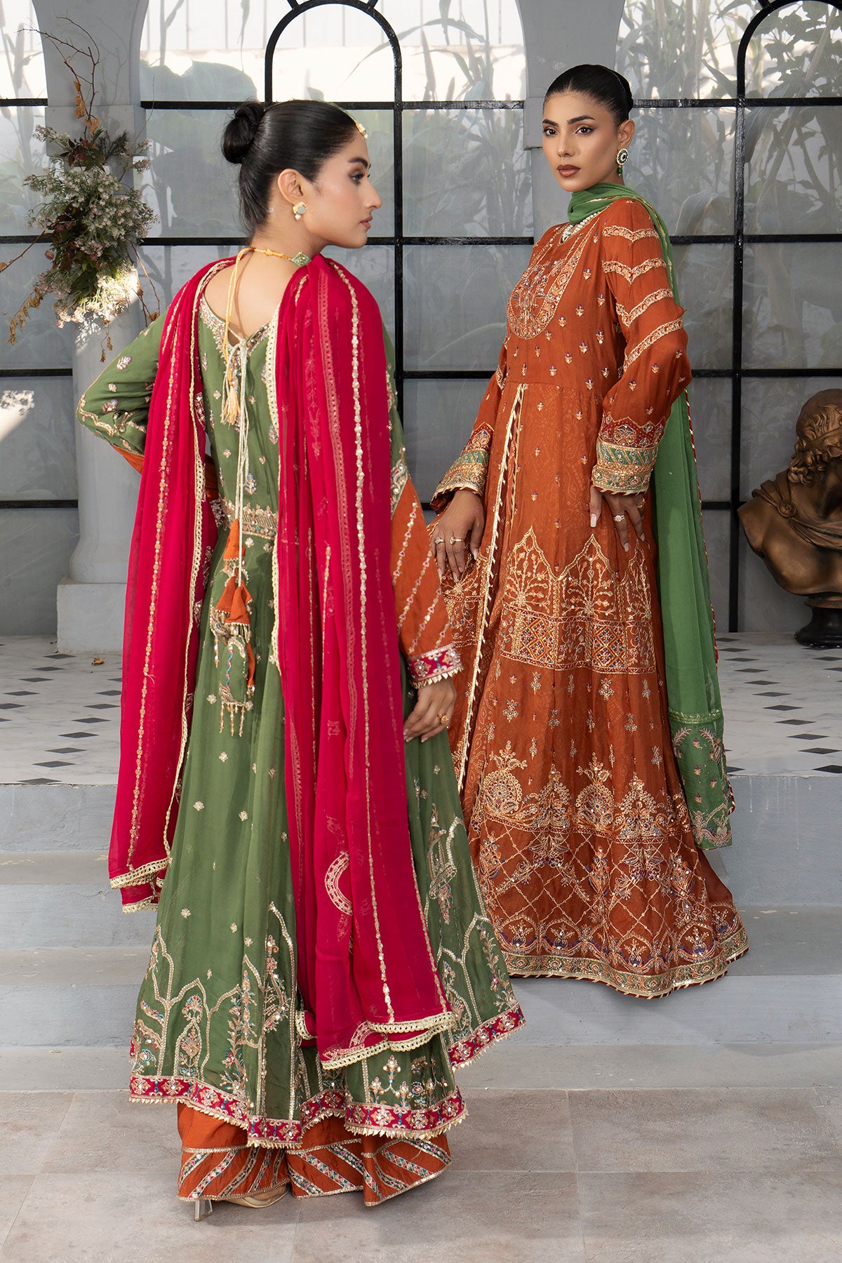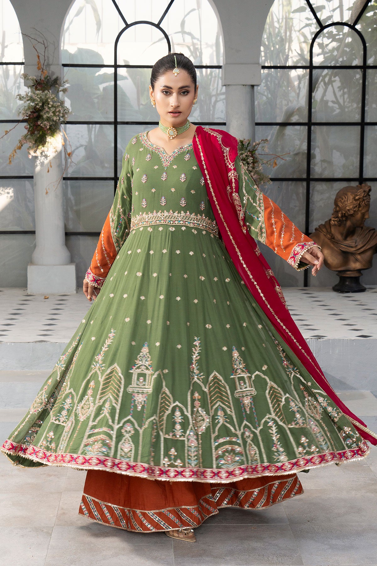 Elevate your wedding look with RN-47! This ready-to-wear outfit features embroidered chiffon with delicate stone work and lace, while the contrast chiffon dupatta adds an extra touch of elegance. The embroidered sleeves and sharara bring a beautiful contrast to complete your special day.