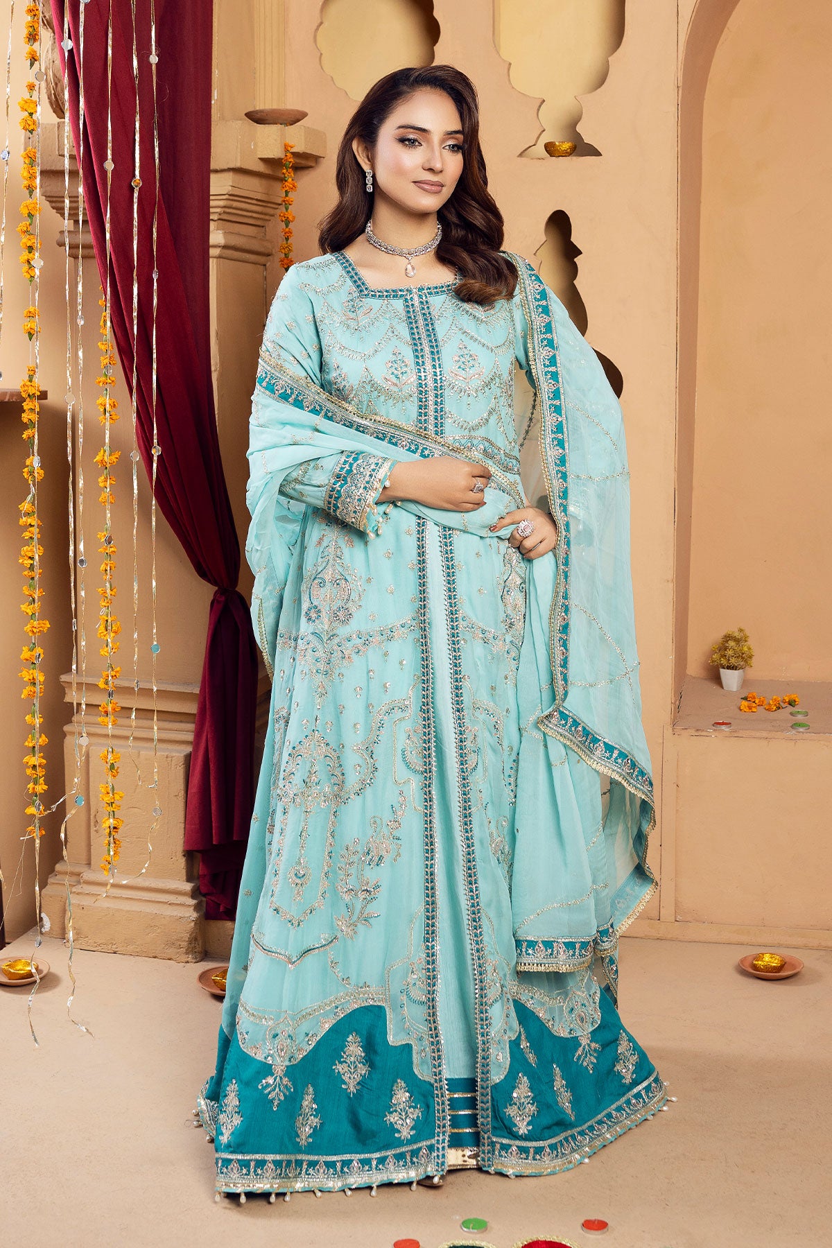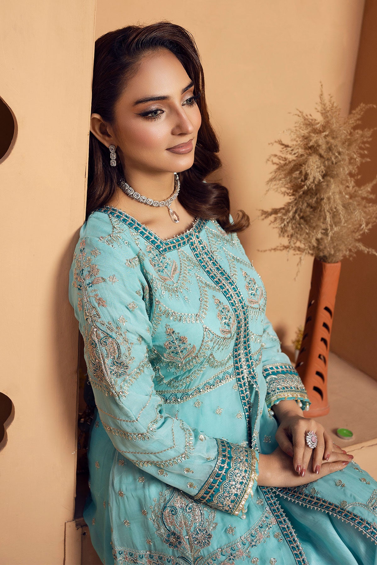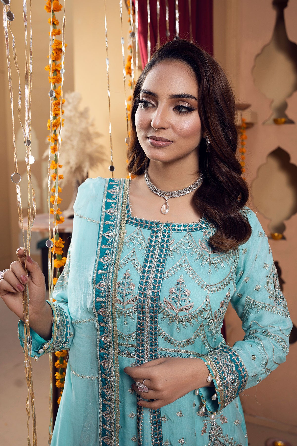 Elevate your style with our RN-51, featuring an embroidered chiffon front adorned with stone and lace work. Inner plain viscose and contrast fabric with lace work complete the look, paired with a plain viscose trouser and embroidered chiffon dupatta with lace work. Ready to wear and exuding elegance.