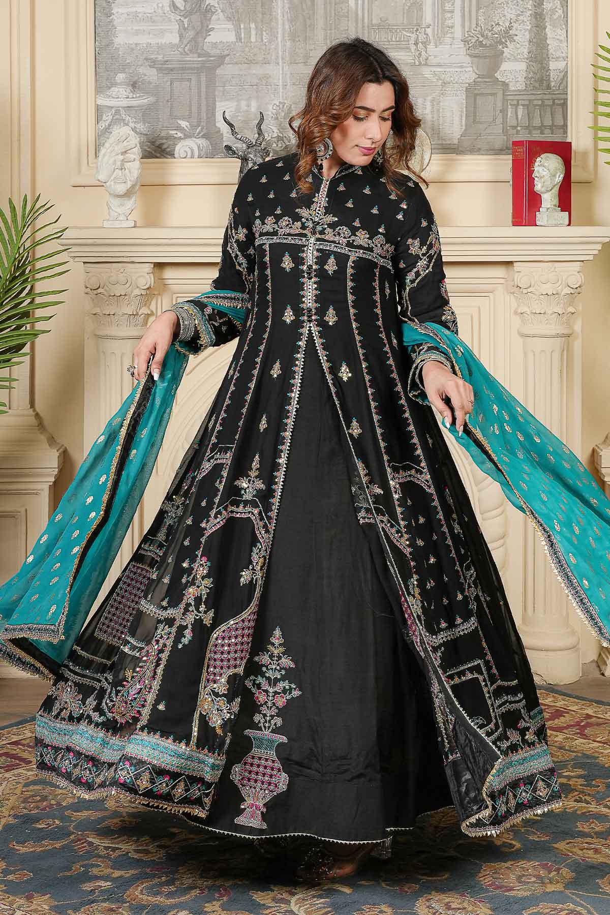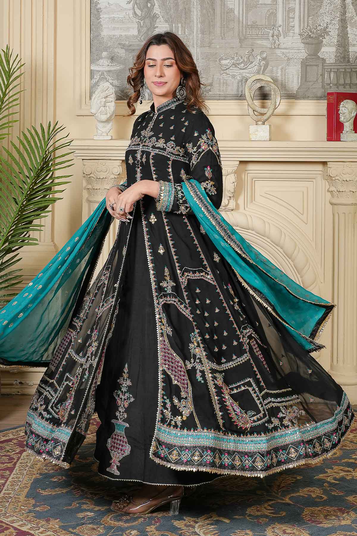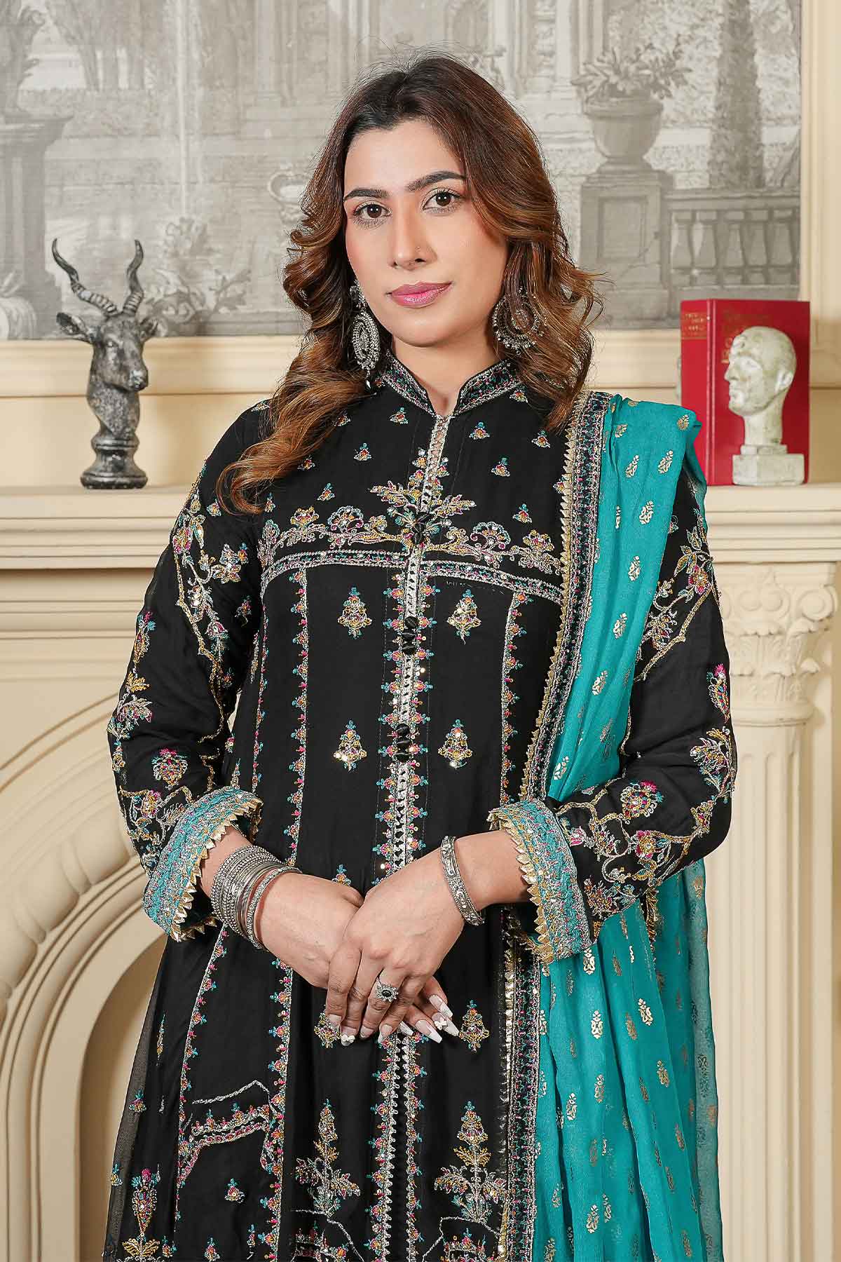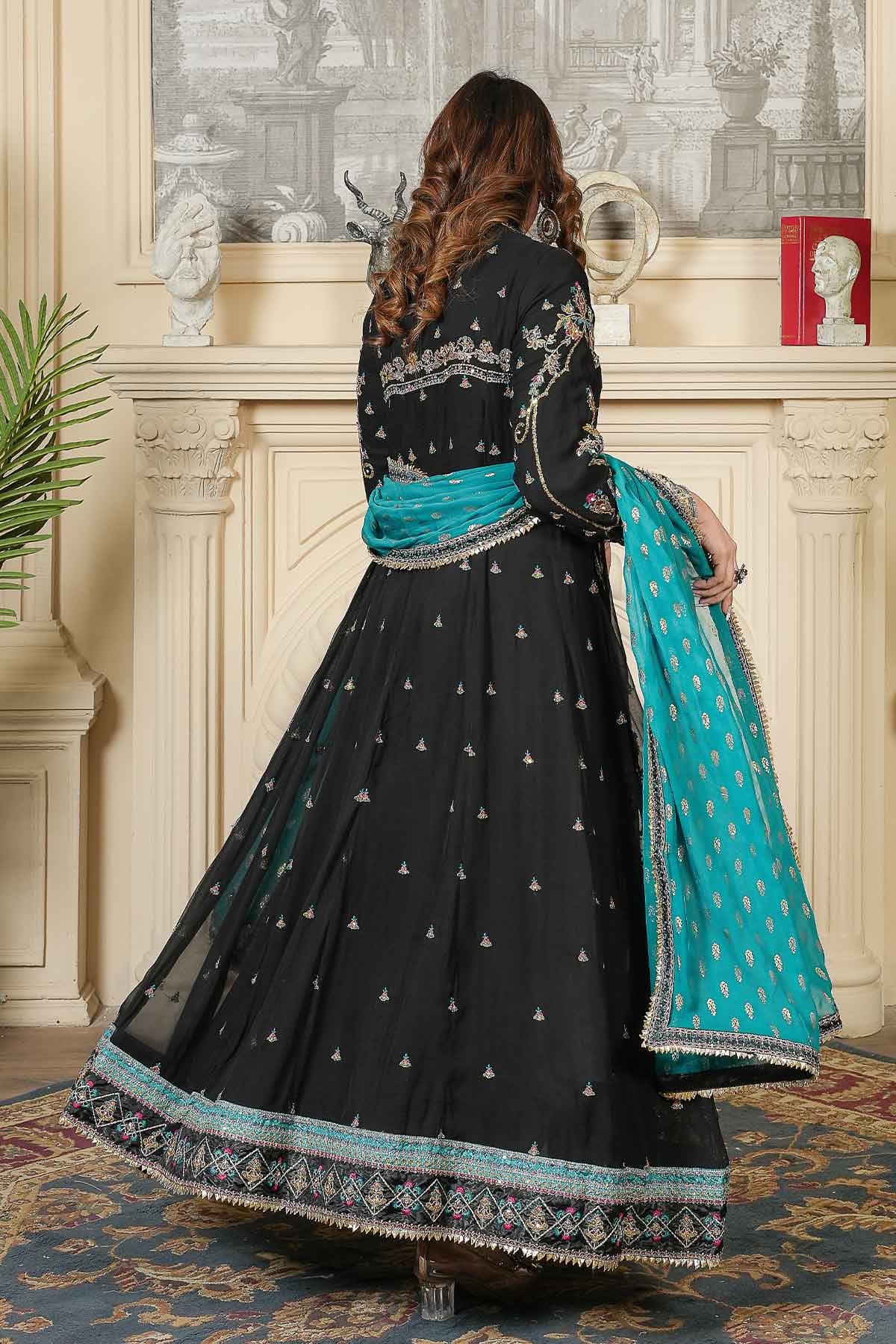 This elegant outfit features intricate embroidery on the front and back of soft chiffon, enhanced with delicate stonework and lace for a refined look. Paired with plain viscose trousers for comfort and style, it is completed by a beautifully patterned pani print chiffon dupatta. Perfectly crafted for formal occasions, this ready-to-wear ensemble offers a blend of sophistication and ease.