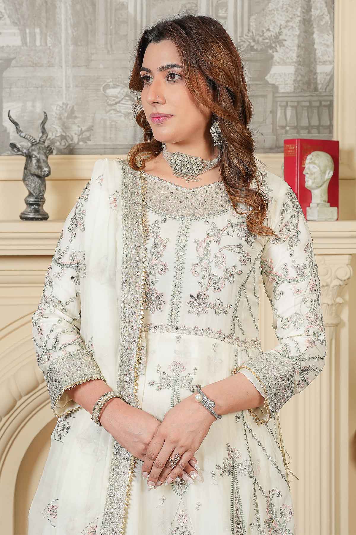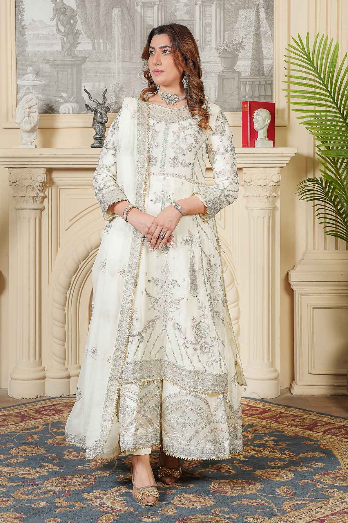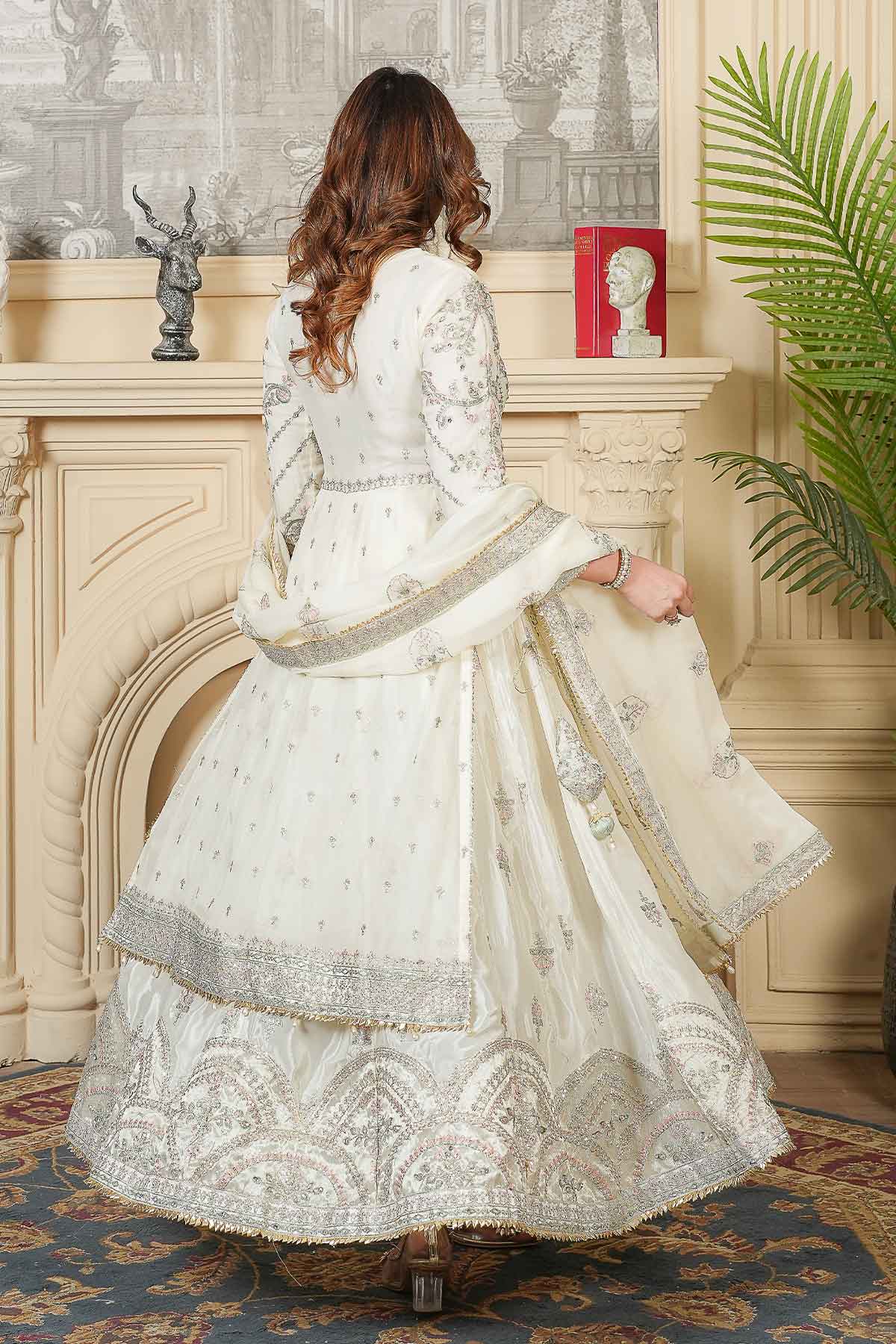 Celebrate your special day in, a breathtaking Nikah ensemble crafted with meticulous attention to detail. The front and back feature exquisite embroidery on premium chiffon, embellished with shimmering stone work and charming tassels. Beneath lies an intricately embroidered tussle silk layer with refined patch work accents. The coordinating embroidered chiffon dupatta is finished with delicate lace detailing, adding grace and elegance. Paired with comfortable plain grip trousers, this complete outfit combines traditional artistry with contemporary comfort, ensuring you look radiant and feel confident on your momentous occasion.