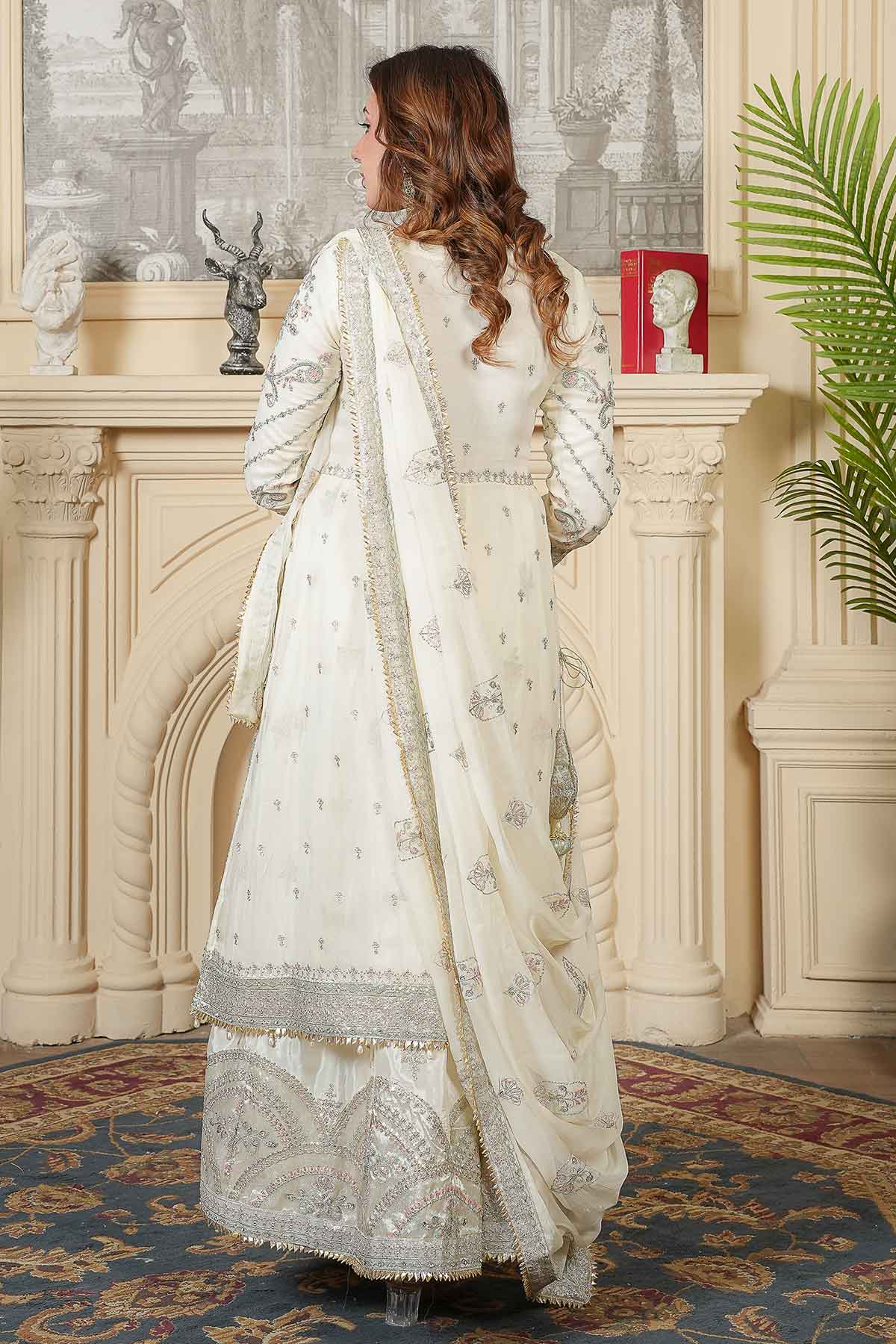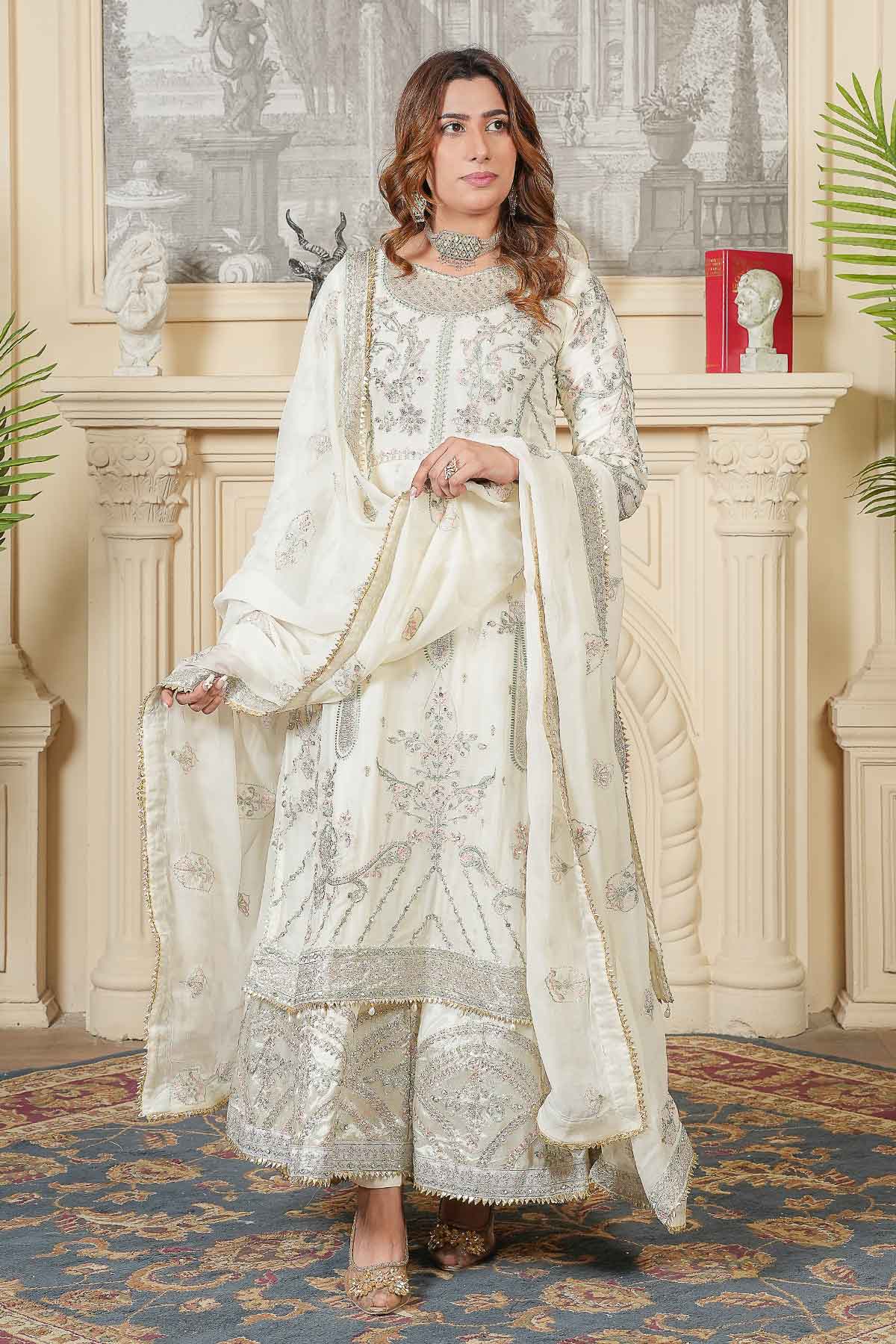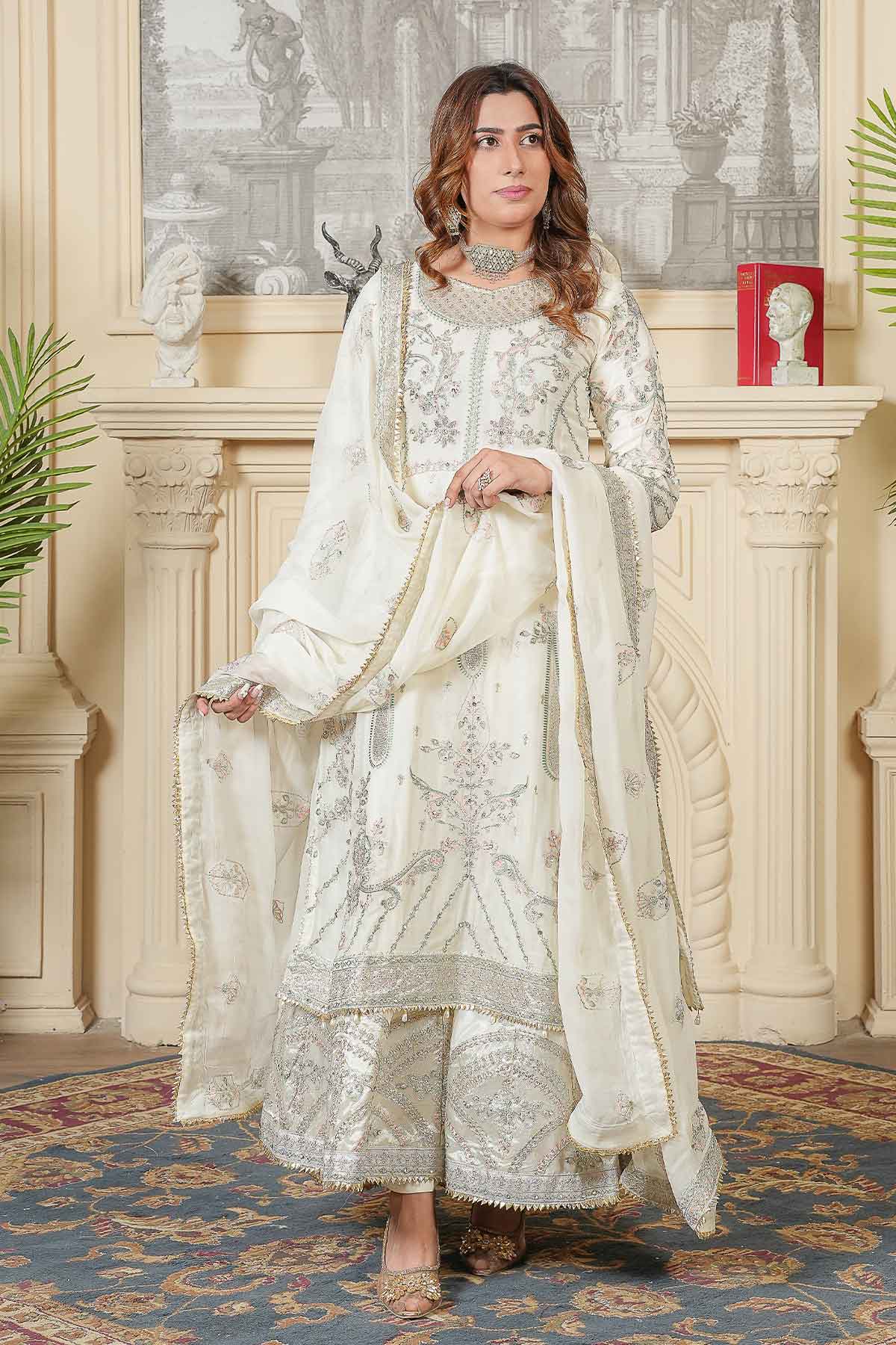 Celebrate your special day in, a breathtaking Nikah ensemble crafted with meticulous attention to detail. The front and back feature exquisite embroidery on premium chiffon, embellished with shimmering stone work and charming tassels. Beneath lies an intricately embroidered tussle silk layer with refined patch work accents. The coordinating embroidered chiffon dupatta is finished with delicate lace detailing, adding grace and elegance. Paired with comfortable plain grip trousers, this complete outfit combines traditional artistry with contemporary comfort, ensuring you look radiant and feel confident on your momentous occasion.