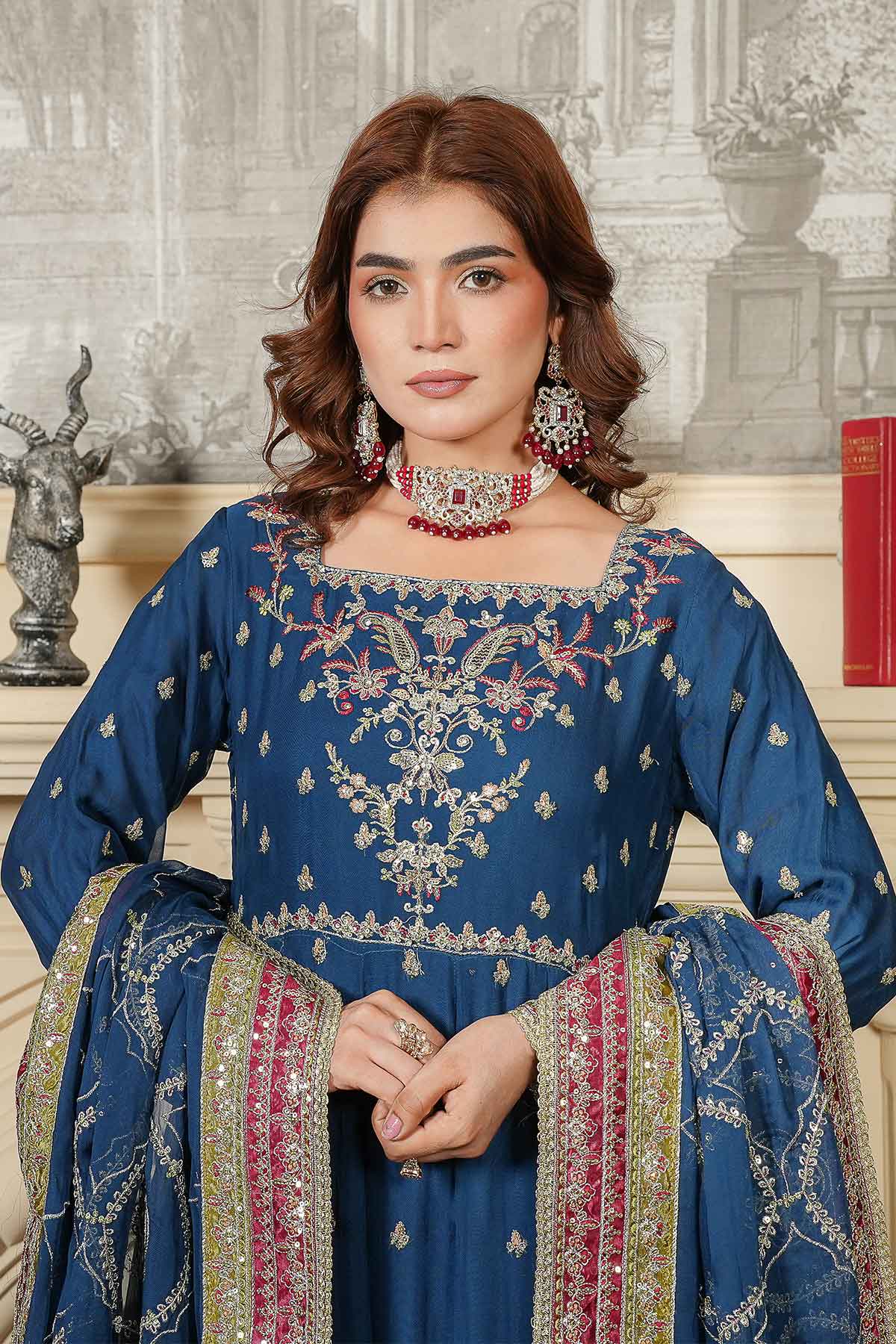 Elevate your wardrobe with this stunning three-piece ensemble designed for the modern woman. The maxi features exquisite embroidery adorning the front, back, and sleeves, beautifully complemented by intricate stone work and delicate lace detailing on luxurious chiffon fabric. The matching chiffon dupatta showcases elegant lace finishing that adds grace to any occasion. Complete the look with comfortable plain grip trousers that provide the perfect foundation. Perfect for weddings, celebrations, or special gatherings, this outfit combines traditional craftsmanship with contemporary style, ensuring you look and feel absolutely radiant.