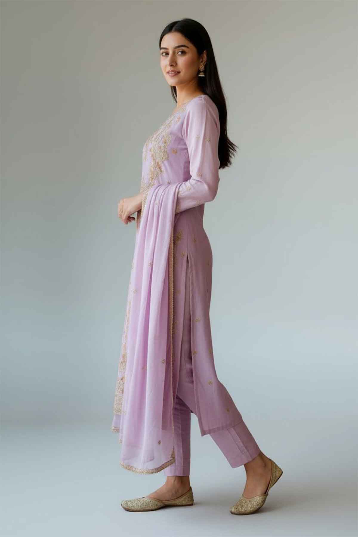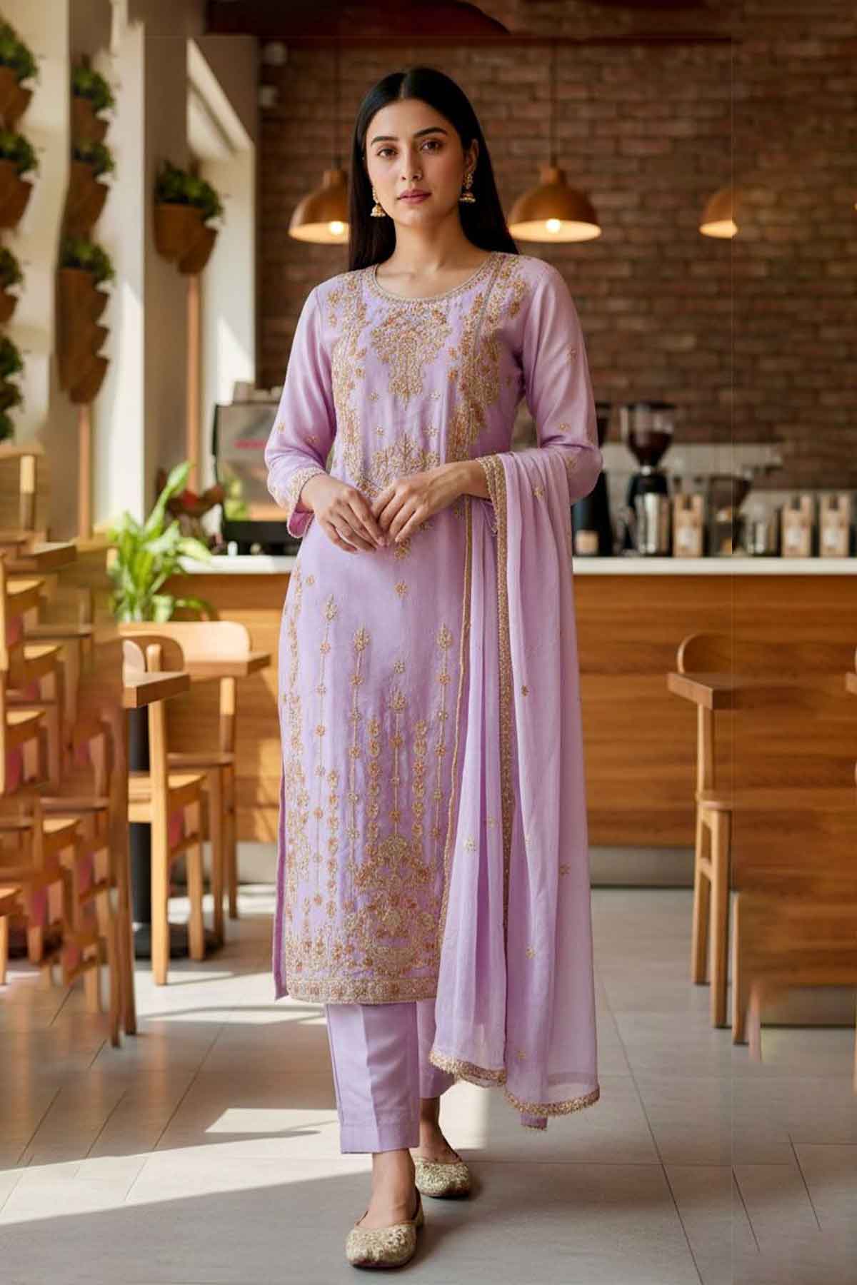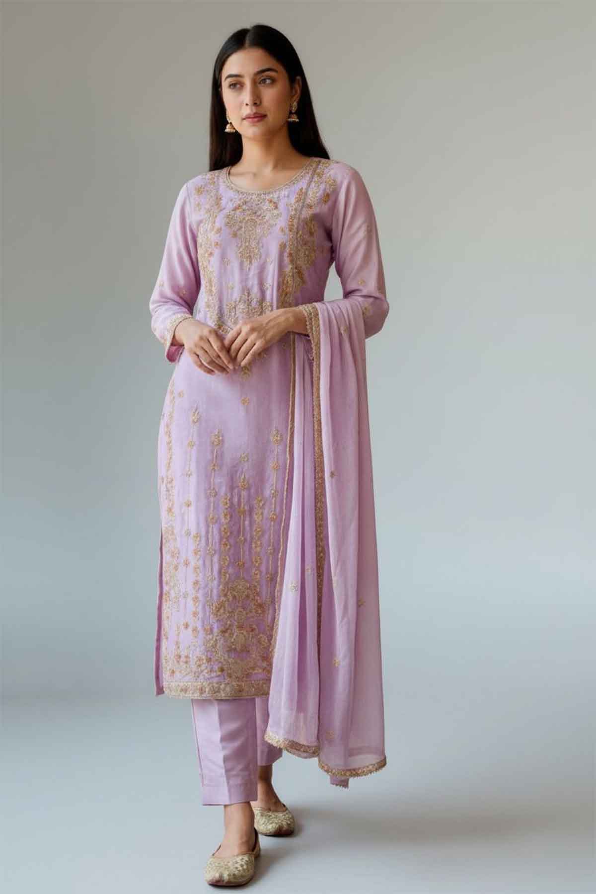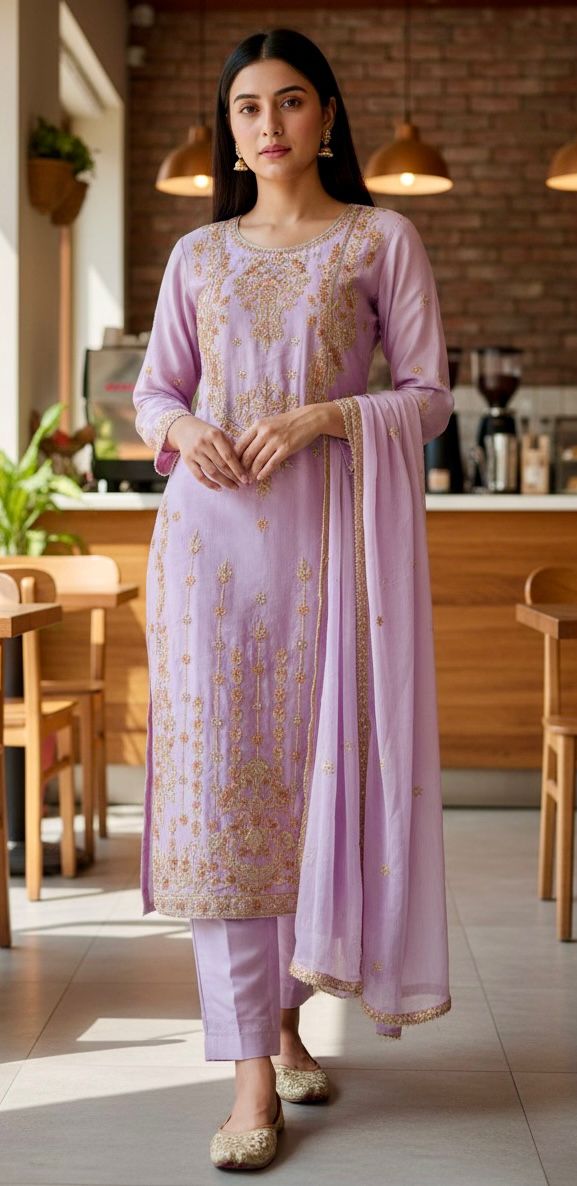 Elevate your wedding day with this stunning ready-to-wear ensemble from our exclusive collection. The intricately hand-crafted front shirt features exquisite cora dabka and pel embellishments on luxurious shesha silk, creating a mesmerizing focal point. The back showcases pristine plain shesha silk for elegant simplicity. Paired with comfortable grip fabric trousers and a flowing chiffon dupatta, this three-piece set offers the perfect balance of tradition and wearability. Designed for the modern bride who celebrates craftsmanship and timeless beauty, this piece promises to make your special moment truly unforgettable.